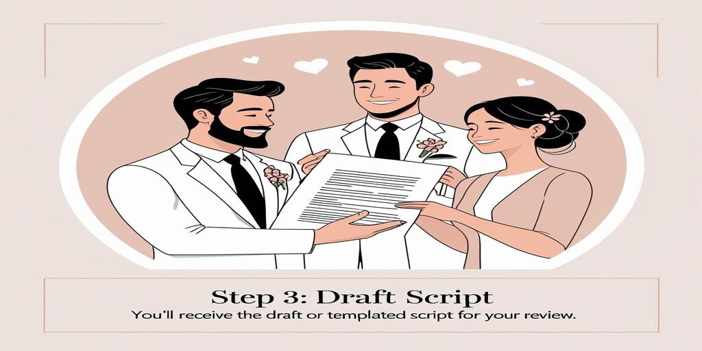 Full vow writing service based on your story and input, delivered as a ready-to-use draft.